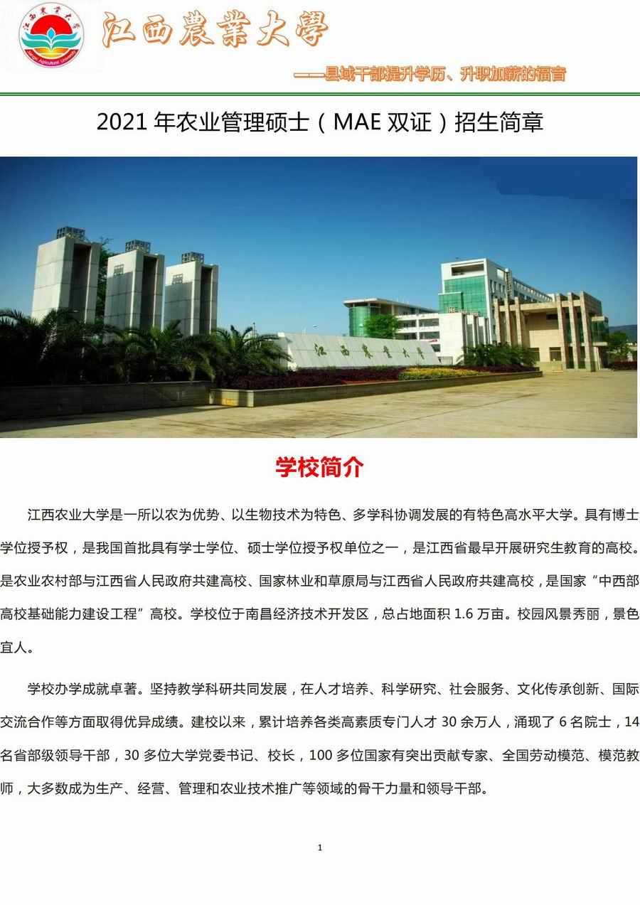 江西農(nóng)業(yè)大學(xué)農(nóng)業(yè)管理碩士(MAE雙證)2020年招生簡(jiǎn)章