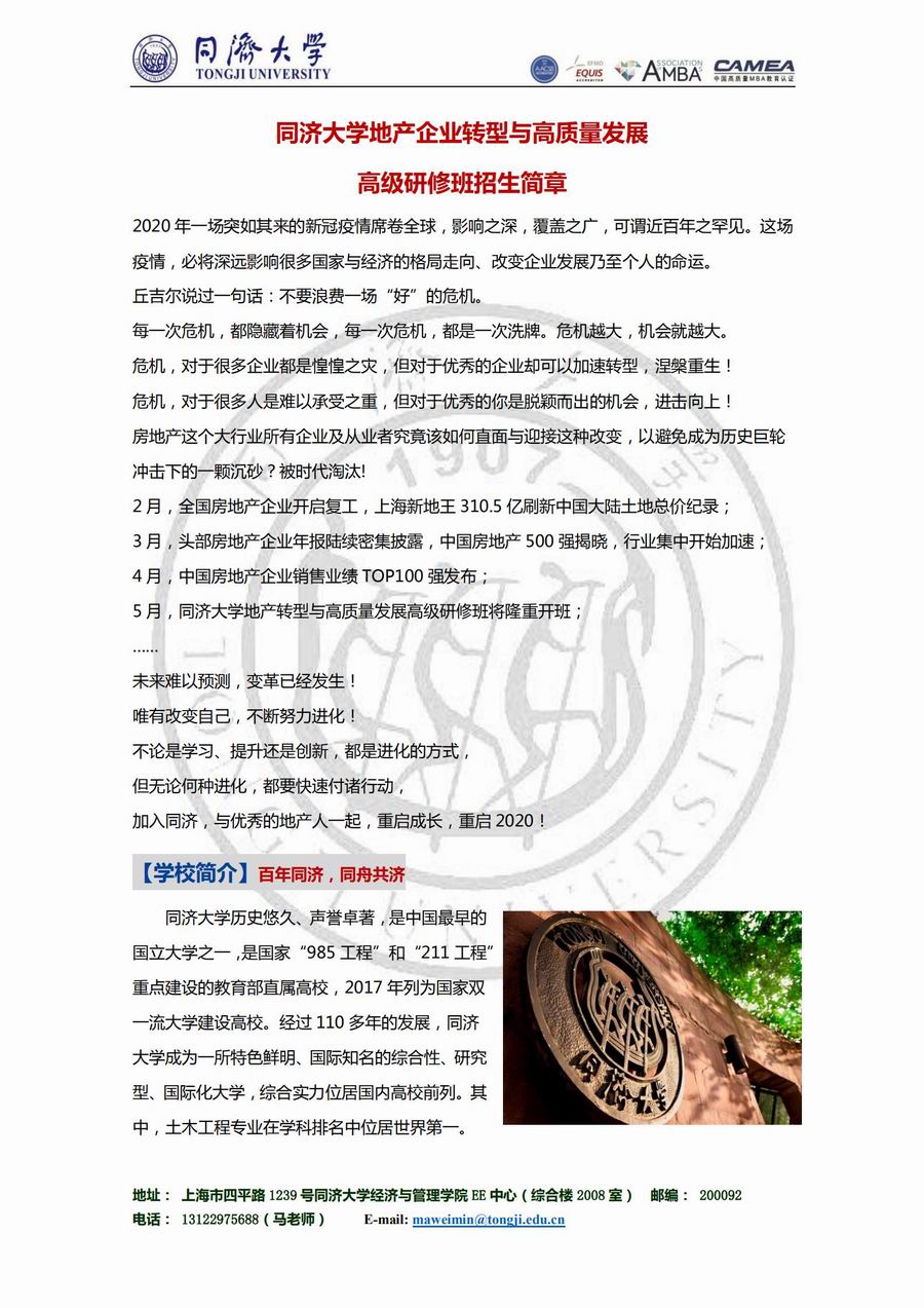 同濟(jì)大學(xué)房地產(chǎn)高級研修班2020招生簡章